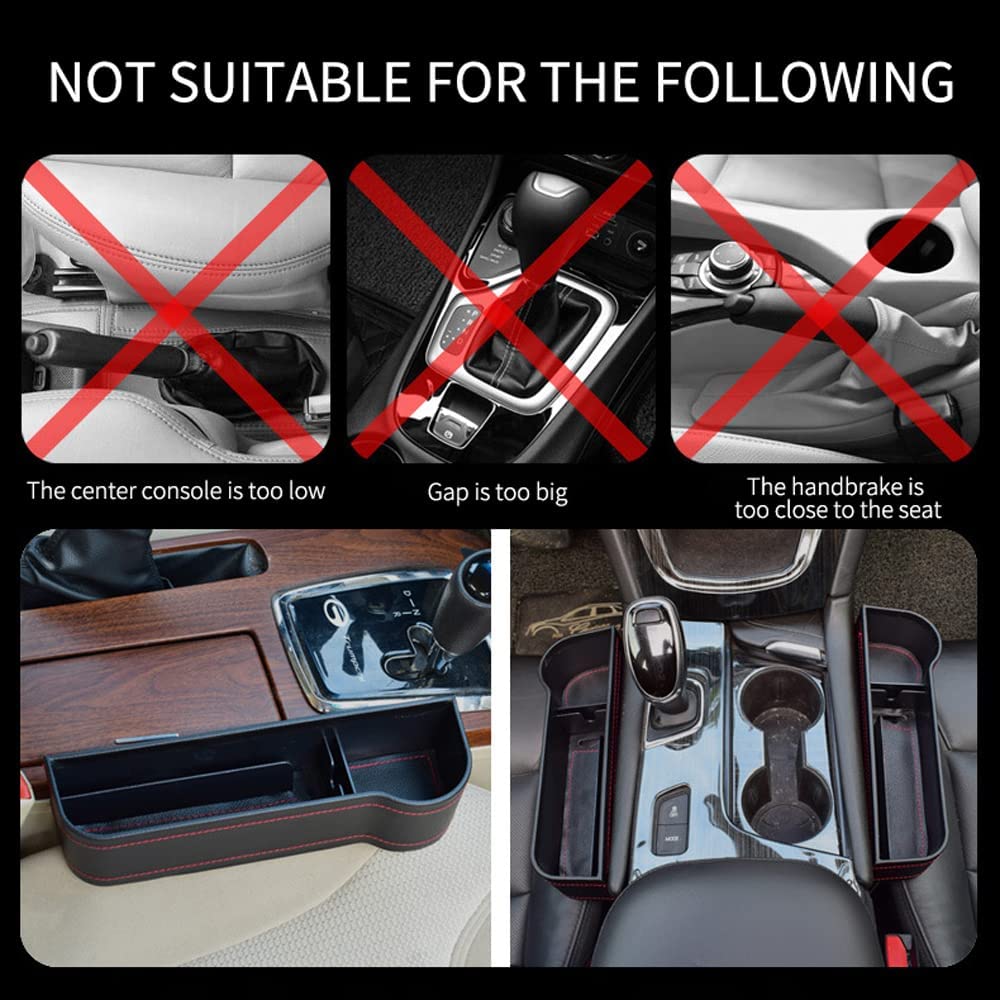 - Extremely easy installation. Just insert the storage boxes into the gaps between the seat and console on both the driver and passenger side, and find a nice snug spot.