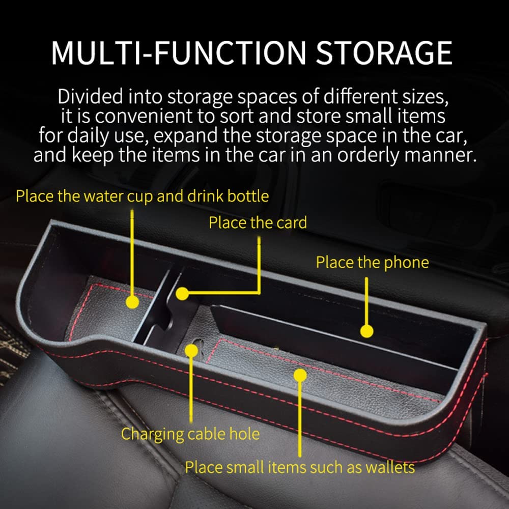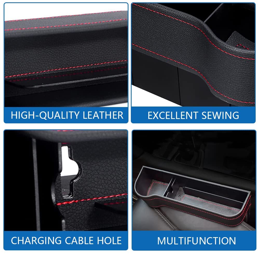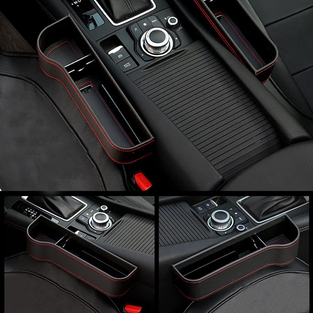 Refreshing Design, Premium PU Leather: These car seat gap fillers are the ultimate solution to keep your personal necessaries organized within your arms reach for an enjoyable ride. This practical storage pocket will save you countless times from digging between the seat and centre console to find your dropped cell phone, credit cards, money, keys, coins, wallet, sunglasses, pens, etc.